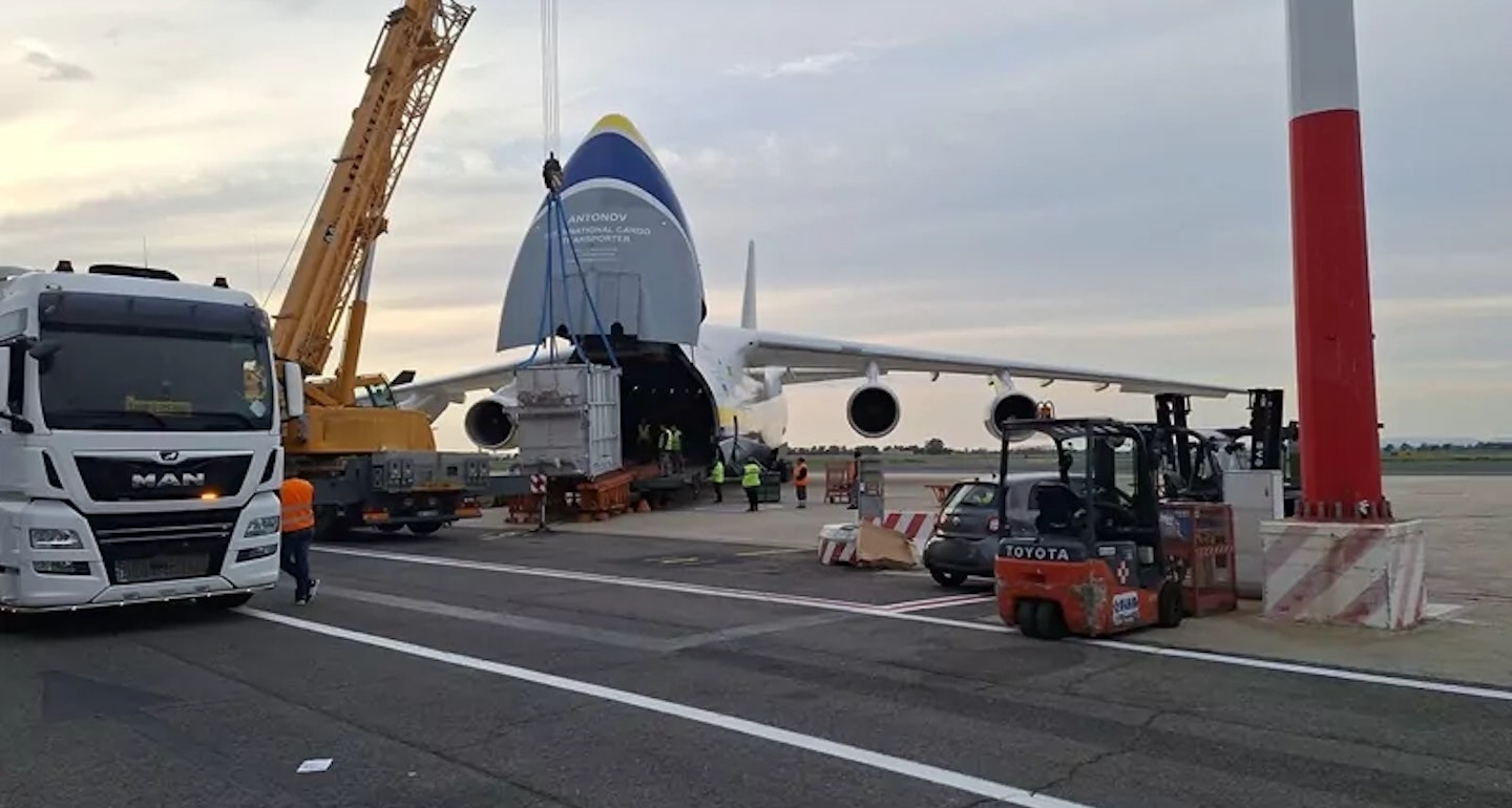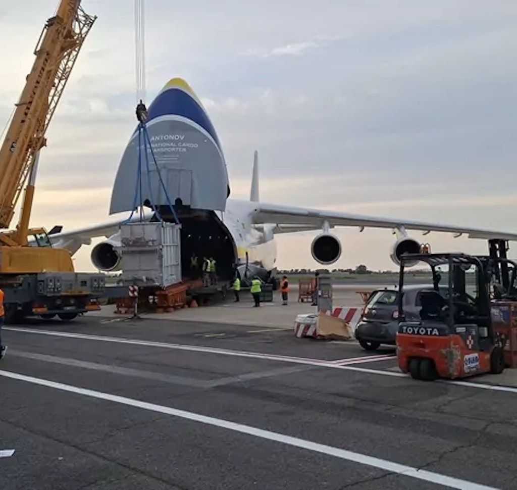 具體而言,交換器被運送到羅馬 Fiumicino 機場,裝上 An124-100。在此過程中,Antonov Airlines 與 Air Partner 合作。鑑於重量超過 20 噸,以及結構尺寸 (6.50 x 2.50 x 3.60 公尺),運輸過程需要特別規劃,並使用臨時車輛。抵達機場後,在 Gruber 的車輛獲准進入跑道之前,必須執行嗅探器和安全控制作業。為了進行裝載,使用了 Antonov 航空公司提供的外部坡道和專用起重機;然後將切換機放置在金屬架上,並在金屬架上插入四個額外的 17WLL 腳鐐,以固定在 An124 內。裝卸作業由 Alha 負責,Gruber 特別要感謝 Alha 的合作。